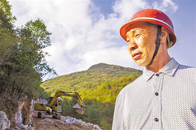 2016年5月10日,巫溪縣紅池壩鎮中崗村,林榮成看著正在施工的機耕道。