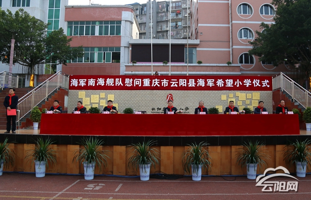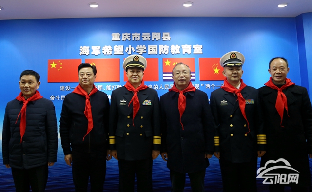 云陽網訊(記者 楊梅娜 實習生 張悅)1月10日,海軍南海艦隊傅耀泉少將帶著軍民魚水深情,到云陽海軍希望小學(雙江小學)為該校“國防教育室”授牌。