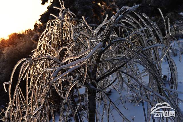 農壩鎮云峰山的森林植被在冰雪中形成霧凇、冰掛景觀,場面壯觀震撼。