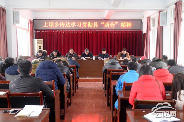 云陽網訊(通訊員 張潤)1月19日,上壩鄉召開會議,傳達學習貫徹縣“兩會”精神。全體機關干部職工、各村社四職干部、鄉屬單位負責人共60余人參加了會議。