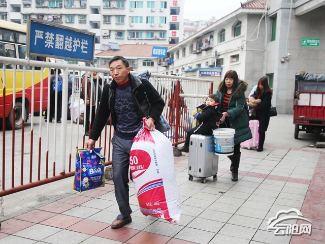 2月1日,春運正式拉開帷幕,云陽汽車客運中心人來人往,旅客拎著大包小包的行李返程。