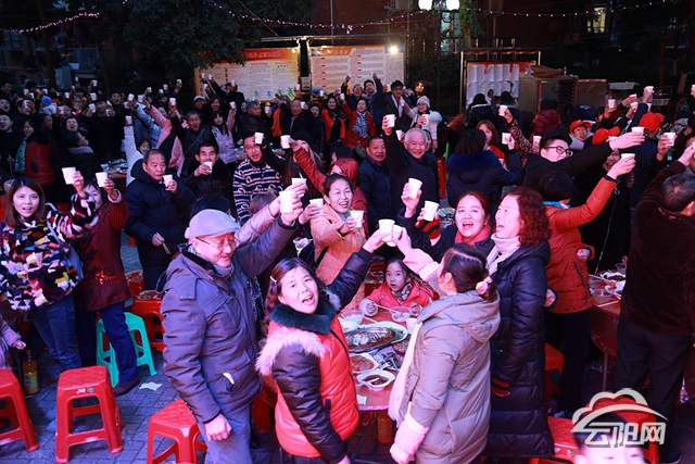 鄰居們一邊品嘗菜肴,一邊相互奉菜,一些愛喝酒的居民在杯中斟滿了美酒,互相碰杯。“讓我們一起舉杯,辭舊迎新!”“干杯!”鄰居們端起酒、茶,在玻璃杯相互碰撞發出的悅耳聲響中,大家不僅感受到了濃濃的年味,還有一份暖暖的鄰里情。