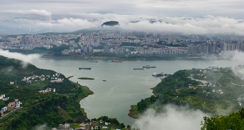 云陽縣城雨中景象 若隱若現(xiàn)恍如仙境