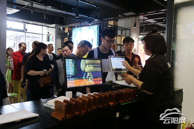 一走進云陽面體驗館,古色古香的環境讓人仿佛置身茶舍內。墻上純手繪的水墨畫畫滿了云陽的山水人情。溫暖的色調、典雅舒適的包間讓人流連忘返,整個面館隨便一拍都是刷爆朋友圈的“大片”。在二樓產品展示銷售區,各類包裝精美的“天生云陽”區域公共品牌云陽面整齊地擺放在展臺。“不僅能在這里吃,還贈送了我一份掛面,打包帶回去分享給家人朋友,這個面館真是搞來了!”正在購買面條的顧客張女士說道。
