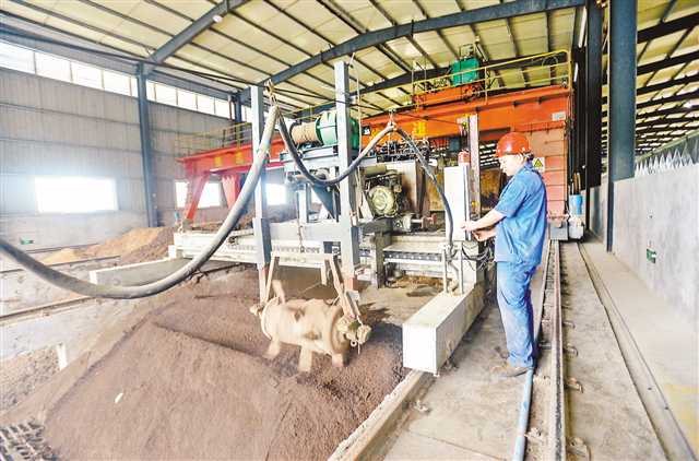 5月22日,豐都縣高家鎮(zhèn)重慶豐澤園肥業(yè)有限公司工人正在操作養(yǎng)殖有機(jī)廢棄物無害化處理生產(chǎn)線。記者 鄭宇 攝
