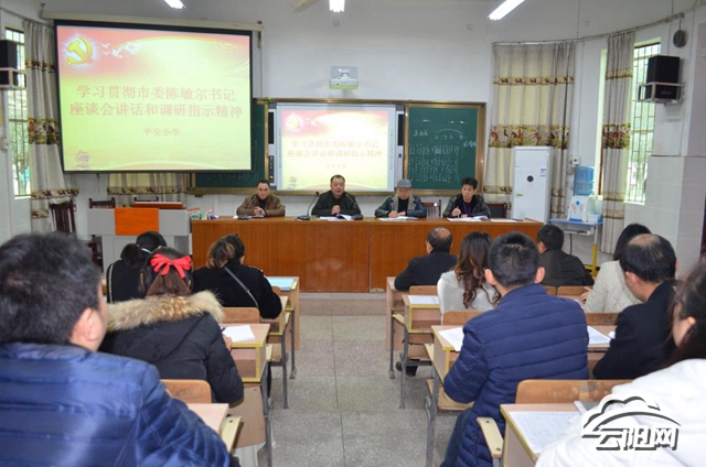 云陽網訊(通訊員 冉秋)11月28日,平安鎮平安小學全校103名教職工學習貫徹市委書記陳敏爾座談會講話和調研指示精神。