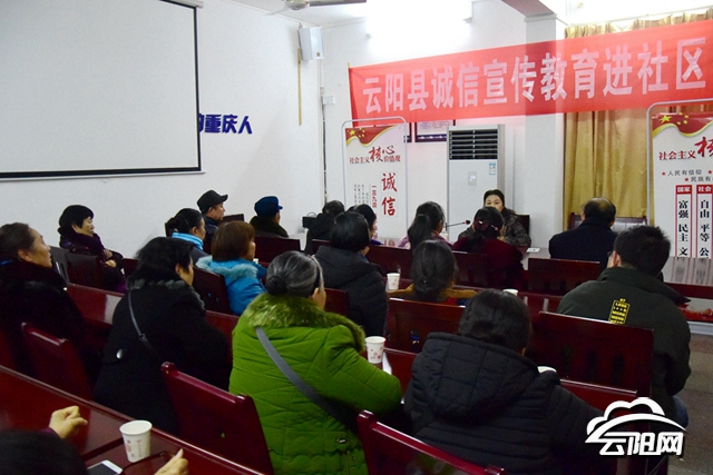 云陽網訊(記者 段斯斯)為加快推進我縣誠信建設和社會信用體系建設工作,進一步增強社區居民的誠信意識,讓誠信教育深入基層,走進街道、社區,走到百姓身邊。近日,由宣傳部主辦的誠信教育進社區活動走進雙江街道杏家灣社區。