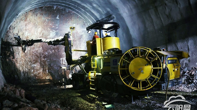 云陽(yáng):三臂鑿巖臺(tái)車開進(jìn)深山修鄭萬高鐵