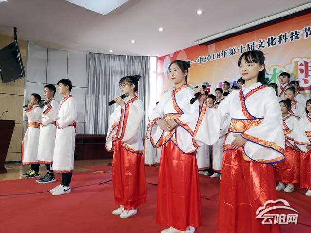 “競速人生,夢想成就未來?!苯?,縣初一中舉辦第十屆文化科技節。演講比賽、詩歌朗誦、文明禮儀大合唱等節目精彩上演,展現了學生的藝術才能,促進學生全面發展。(梁春紅 攝)