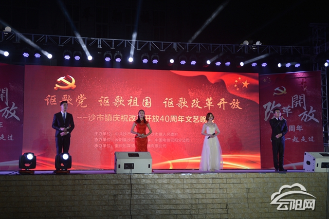云陽(yáng)網(wǎng)訊(通訊員 朱梅花 王成舟)四十載崢嶸歲月,四十載奮斗征程。12月28日晚,以“謳歌黨、謳歌祖國(guó)、謳歌改革開(kāi)放”為主題的沙市鎮(zhèn)紀(jì)念改革開(kāi)放40周年文藝晚會(huì),在沙市鎮(zhèn)沙沱中學(xué)隆重上演。