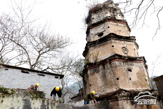 云陽網訊(實習生 劉浮生)云安文峰塔江邊屹立160多年,暗病纏身的文峰塔已滿是歲月的痕跡,為保護這座古塔,1月18日,縣文管所啟動對云安文峰塔的修繕工作,這是歷史文化名鎮云安古鎮文物保護工程中重要的組成部分。
