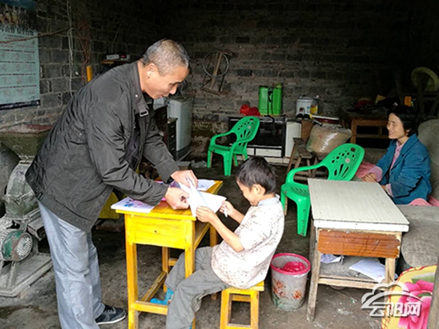 這天,鐘勁松和涂曉東備了一袋文具、書本和一袋水果、零食,一人提著一袋來到施銀穿家中。他們都是第一次見到這孩子,小小的個頭,瘦瘦的臉,眼窩凹陷,身上罩著一件分辨不出是白色還是灰色的短袖T恤。
