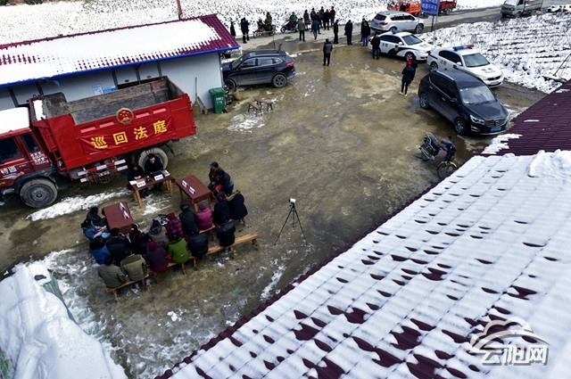 近日,縣人民法院第四人民法庭干警巡回于上壩鄉辦理案件,在海拔1500多米龍鳳村3組,“雪地法官”分別就民間借貸案件和婚姻家庭糾紛展開巡回審理。