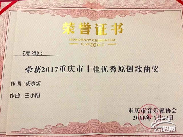王小剛如今是云陽教師進修學院音樂高級講師、縣音樂家協會主席、縣文聯副主席。身為音協主席,這幾年來,自己潛心創作之余,也沒忘記幫助年輕創作者提高創作水平。他多次請市音協專業作曲家下來講課,推薦會員參加高端培訓,邀請周邊區縣的創作人員來云陽交流;同時還積極動員縣作協、詩歌團體的成員創作歌詞,共同推進本土音樂創作的發展。