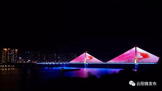 游客在盤龍街道農(nóng)家樂里拍攝的大橋夜景