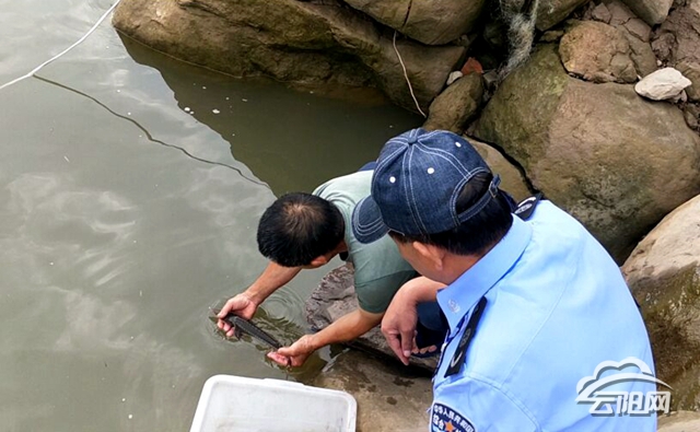 云陽網訊(記者 李旭忠 通訊員 張崗 譚永峰)7月10日,新津鄉綜合執法大隊接到新津村漁民陳啟光誤捕到珍貴魚種的消息,執法人員隨即趕赴現場。該魚體重半斤有余,渾身烏黑,體呈紡錐形,頭尖吻長,背部有菱形骨板。經核查,確為野生中華鱘。得知這是一條中華鱘后,陳啟光毫不猶豫地將其放生了。