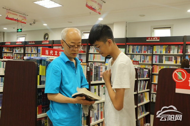 云陽網(wǎng)訊(記者 劉雪梅 實習生 付鈺博)“小朋友,你需要什么樣的書籍,我?guī)湍隳谩苯眨谛氯A書店,徐積勇正在為前來購買書籍的學生介紹書籍。