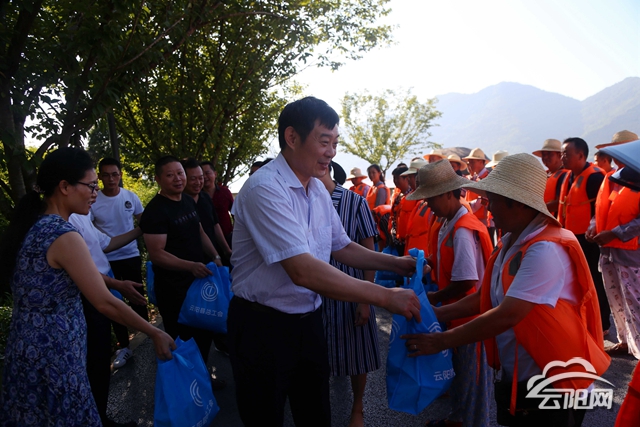 “你們辛苦了!感謝你們把長江的環境清理得這么干凈。”在月光草坪,趙勇向奮戰在一線的長江清漂隊員們表示親切慰問,并為他們送上了綠豆、藿香正氣水等防暑用品。趙勇說,為切實保護好庫區環境,清漂大隊的隊員們每天都堅守在清漂一線,為航道暢通和守護一江碧水保駕護航,為保護云陽“一江四河”的生態環境做出了貢獻,希望大家堅守崗位、履職盡責,做好高溫天氣的安全作業和防暑降溫措施。