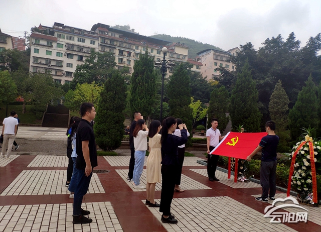 團縣委全體職工還前往民德廣場彭詠梧紀念碑前重溫入黨誓詞,在彭詠梧烈士的雕像下,感念他的生平并敬獻白菊,以表懷念。