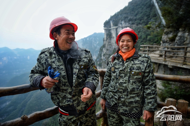 云陽網訊(記者 鄧庭庭 實習生 劉超)“貴生!貴生!貴生!……”在距離地面700多米的棧道上,她死死拉住綁在腰間的繩子,神色緊張地向著下方的萬丈懸崖大聲呼喊道。“我在!我在!我在!……”聽到丈夫的聲音從懸崖下傳來,她緊皺的眉頭才稍稍舒緩,握住繩子的手卻更加用力。這個“工作”她已經輕車熟路,但依舊膽戰心驚。