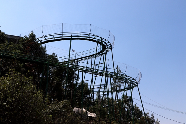 云端飛車位于映月洞上方,滑道長度為792米,速度小于40千米/小時。目前共設有30輛車,車速由游客自主控制,游客可駕駛車輛“飛檐走壁”,還可穿梭在叢林,十分有趣!云端飛車掛牌價為100元/人,現游客體驗價60元/人。但要提醒大家注意的是,在行駛中要注意剎車,彎道慢行,后車禁止碰到前車,穿梭在叢林,切勿將手腳伸出車外。