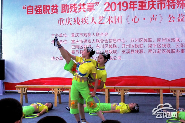 云陽網訊(記者 李充 通訊員 鄭章彥)“自強脫貧,助殘共享。”10月21日,重慶殘疾藝術團《心·聲》公益演出在人和初級中學大禮堂舉行,該校師生共同觀看了這場精彩而感人的表演。