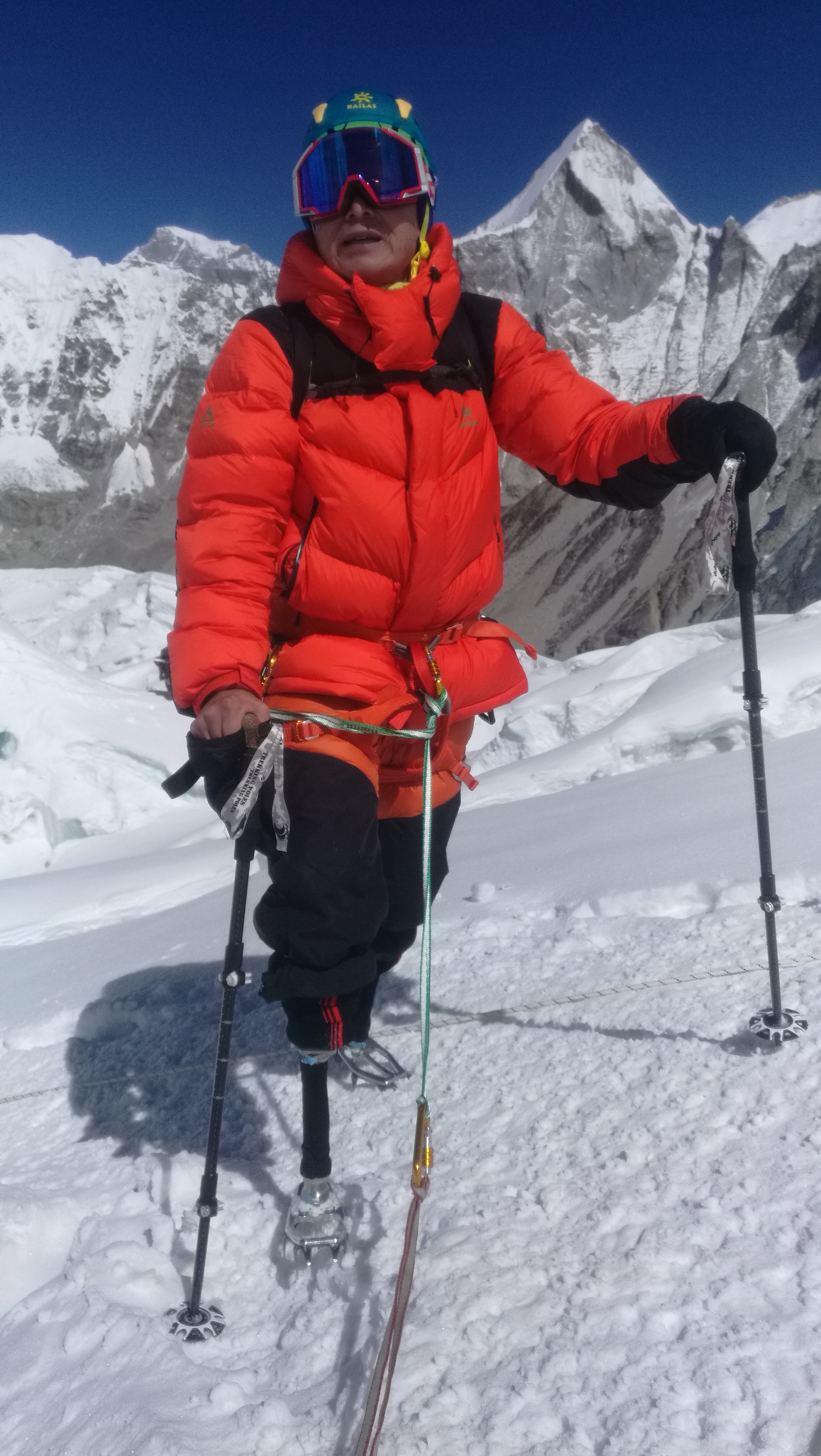 1975年,他作為中國(guó)登山隊(duì)的一員攀登珠峰,他將睡袋讓給隊(duì)友,雙腳凍傷以致截肢。裝上假肢后,他仍堅(jiān)持大運(yùn)動(dòng)量訓(xùn)練。從2013年開(kāi)始,計(jì)劃再度攀登珠峰。2018年5月,他終于經(jīng)過(guò)7天的艱苦攀登,依靠假肢順利登上了珠峰。這是他43年以來(lái)第五次沖頂珠峰,同時(shí),他也成為了中國(guó)第一位無(wú)腿成功登頂珠峰的登山者。2019年9月1日,在央視《開(kāi)學(xué)第一課》上,講述他中國(guó)登山隊(duì)攀登珠峰的故事。