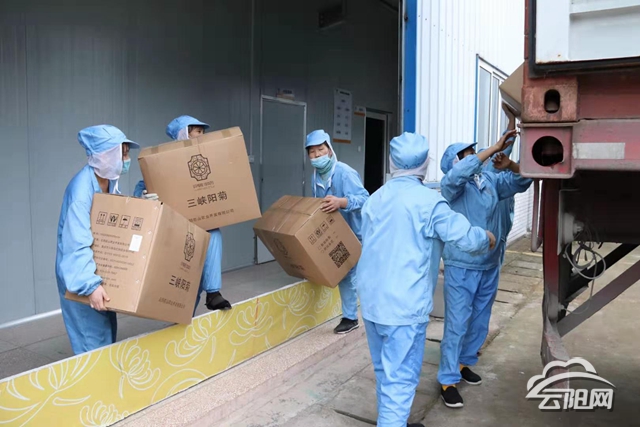 當天下午,在云陽縣蕓山農業紅獅加工廠,一片繁忙,工人們正忙著將加工之后的菊花裝箱,利用集裝箱車運往新加坡。