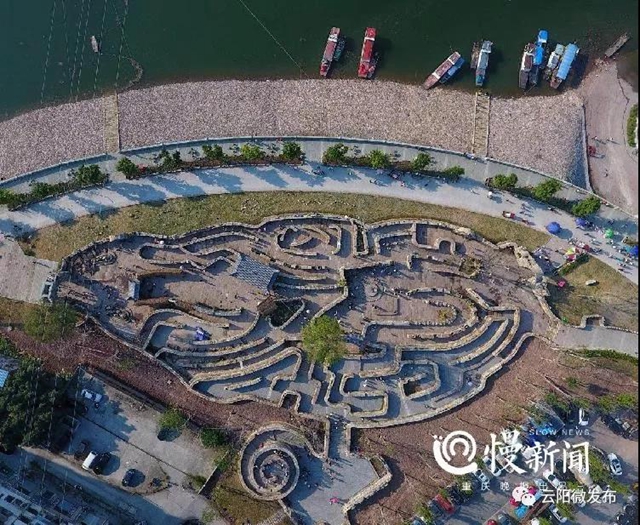 迷宮景觀主要以“記憶、展示、傳承”為主題,充分反映了云陽人民過去的生產、生活片段,讓人們在迷宮探尋的同時,喚醒對云陽人過去生產生活的美好回憶。更有趣的是,迷宮有各種走法,從迷宮的東門走到西門,一共有380種走法,從東門走到西門再走到南門,一共有1300多種走法,這么多種線路就等著大家一同來探索了!