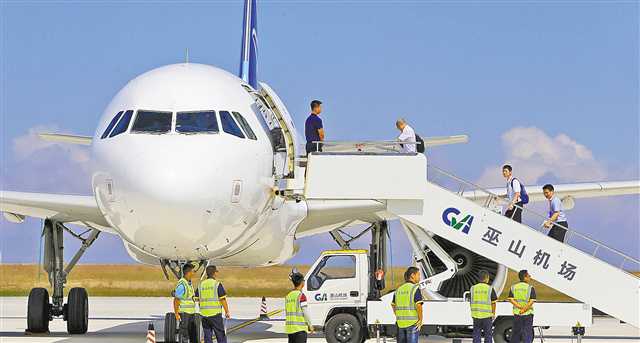 2019年8月16日,巫山機(jī)場(chǎng)建成投用。“在家門(mén)口就可坐飛機(jī),50分鐘就到主城,不用坐五六個(gè)小時(shí)的大巴。”老家在巫山,工作在主城的市民李明稱(chēng)。