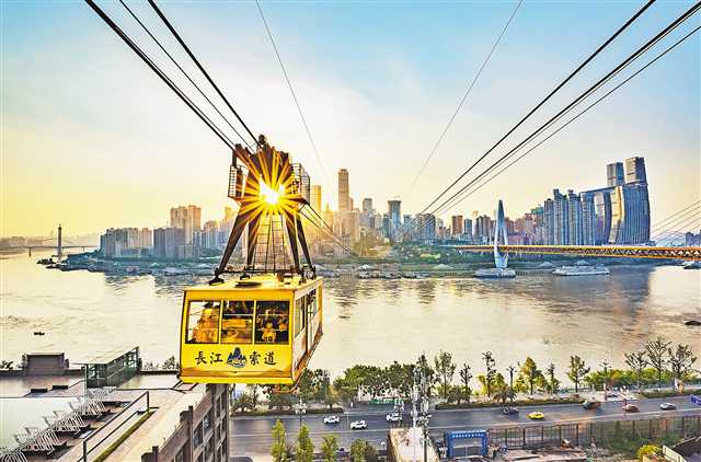 除了垂直升降梯,還有空中的變化——長(zhǎng)江索道。