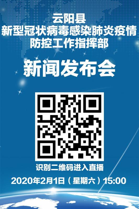 2月1日15:00,云陽縣新型冠狀病毒感染肺炎疫情防控工作指揮部將舉行新聞發布會。一是縣政府副縣長劉新民發布疫情防控基本情況;二是縣委常委、政法委書記羅啟輝發布網格化普查情況;三是縣政府副縣長李大武發布社會面管控有關情況;四是回答記者提問和網民關切。屆時,云陽縣融媒體中心將通過智慧云陽APP、云陽網和云陽手機臺等全媒體平臺進行視頻、圖文直播。?