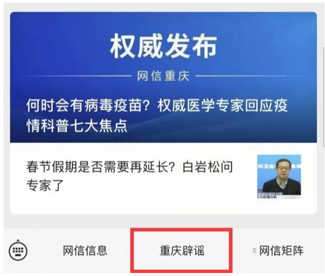 點擊底部“重慶辟謠”菜單