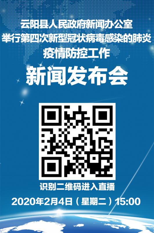 2月4日15:00,云陽縣人民政府新聞辦公室將舉行第四次新型冠狀病毒感染的肺炎疫情防控工作新聞發布會。一是縣衛生健康委副主任黎雪華通報我縣疫情基本情況;二是縣人民醫院副院長劉華東發布救治、成效等情況;三是縣健康促進中心主任秦川輝發布健康知識普及等情況;四是回答記者提問和網民關切。屆時,云陽縣融媒體中心將通過智慧云陽APP、云陽網和云陽手機臺等全媒體平臺進行視頻、圖文直播。
