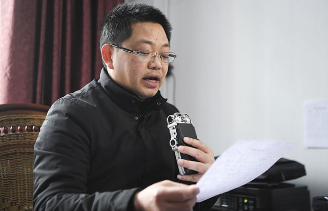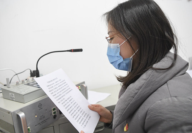 2月4日,重慶市云陽縣人和街道工作人員在錄制用于廣播宣傳的疫情防控知識。 新華社記者王全超攝