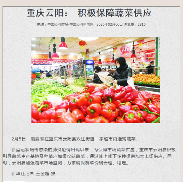 疫情期間云陽積極保障蔬菜供應 受到國內各大媒體關注,詳情如下: