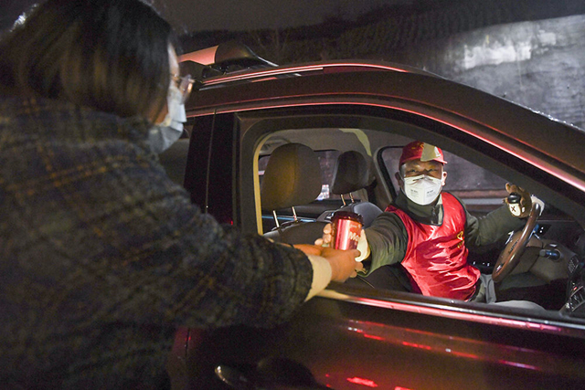 ↑2月6日晚,云陽縣人民醫院的一名醫務人員在到達目的地后,得知當日是郭高平的生日,特意送了一杯奶茶表達自己的謝意,并祝他生日快樂。新華社記者 王全超 攝