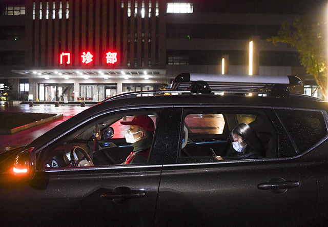 ↑2月6日晚,郭高平開車送云陽縣人民醫院的醫務人員上夜班。新華社記者 王全超 攝