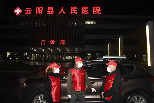 ↑2月6日晚,郭高平開車送云陽縣人民醫院醫務人員上夜班。新華社記者 王全超 攝
