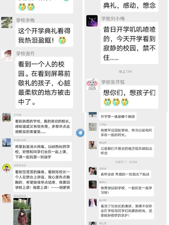 “看到空蕩蕩的操場,看到張校長一個人在旗臺上講話,我心里酸酸的,希望疫情早點結束,我要回學校上課!”同學胡晉賢通過媽媽的手機留言道。許多老師和家長也紛紛留言:這場升旗儀式看得我熱淚盈眶。