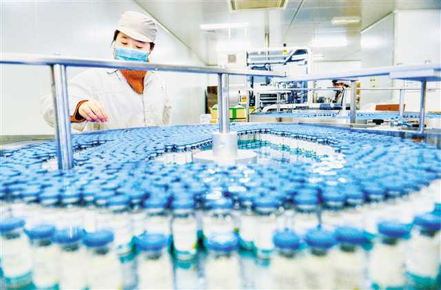 2月10日,位于兩江新區(qū)的重慶華邦制藥無菌制劑生產(chǎn)區(qū),工作人員正在外包裝線忙碌。