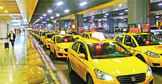 2月10日,重慶火車北站,巡游出租車排隊(duì)等候返程旅客。當(dāng)日,我市巡游出租車全部復(fù)工投入營運(yùn)。特約攝影 鐘志兵