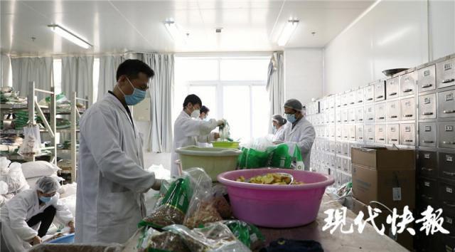 現代快報訊 一包包中藥在工廠里煎好、包裝,裝上車,分送到方艙醫院、各個社區隔離點,再交到患者和隔離留觀者的手里。