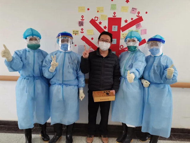 云陽醫療隊員與接手病房后出院的第一名患者合影