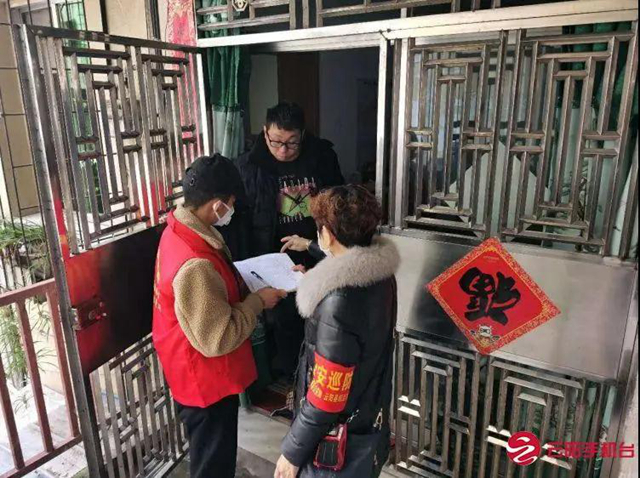 青年志愿者上門摸排登記湖北返鄉人員信息。