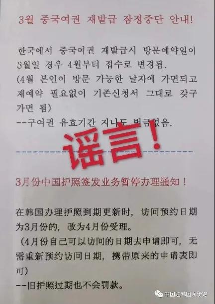 中國駐韓國大使館特就此澄清如下:為確保在韓中國公民的正常工作生活,中國駐韓國大使館在全力防范疫情的同時,正常辦理護照/旅行證。