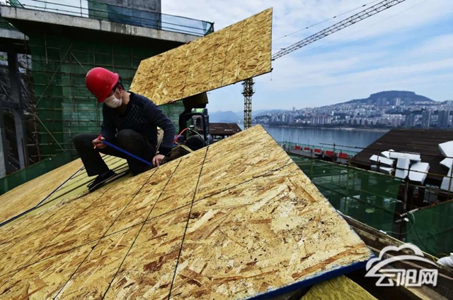 3月10日,記者在云陽縣打造的全新歷史文化旅游街區——張飛廟民俗風情街的施工現場看到,工地已經恢復了正常作業。大型機械設備來回穿梭,工人們正在進行鋪設地磚、完善排水系統等作業,整個街區的部分主體建筑拔地而起,威武的城樓造型映入眼簾。