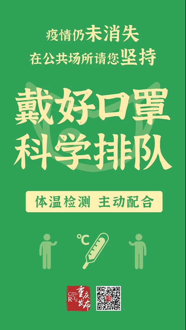 專家認(rèn)為,重慶所有區(qū)縣連續(xù)18日無新增確診病例,現(xiàn)有在院確診病例為零的區(qū)縣增至37個(gè),疫情防控形勢持續(xù)向好。但境外疫情快速發(fā)展,外防輸入工作面臨新的挑戰(zhàn);隨著逐步復(fù)工復(fù)產(chǎn)復(fù)市,人員流動和聚集增加帶來的疫情傳播風(fēng)險(xiǎn)仍然存在。