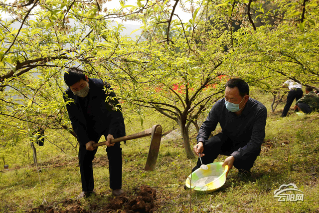 同時,縣人大機關的黨員干部還身體力行,幫助村民為果樹除草施肥,積極參與產業管護,助力春耕。