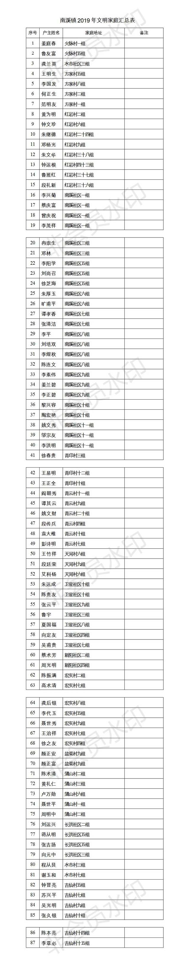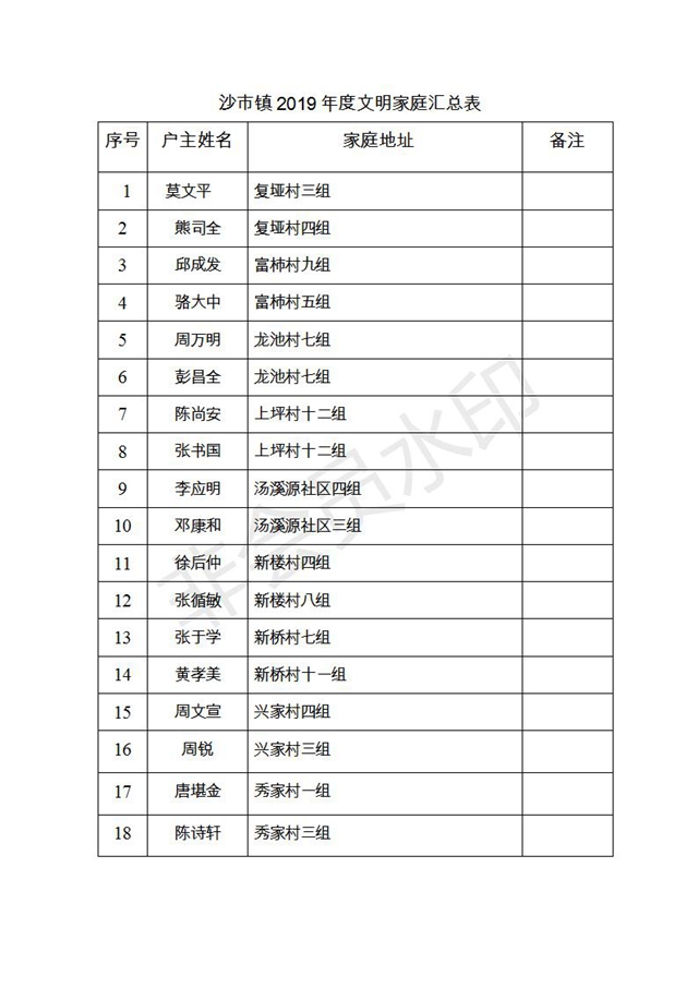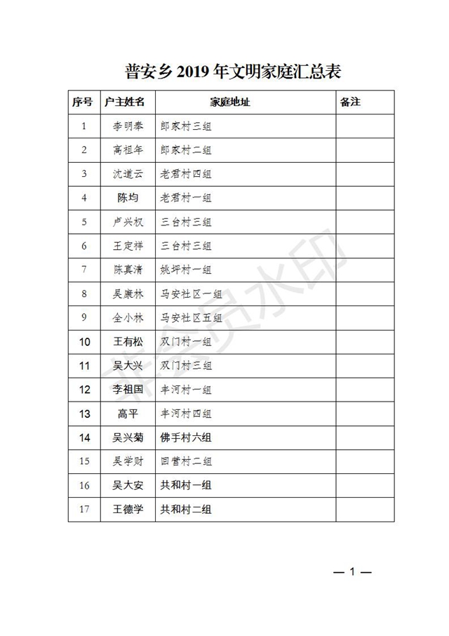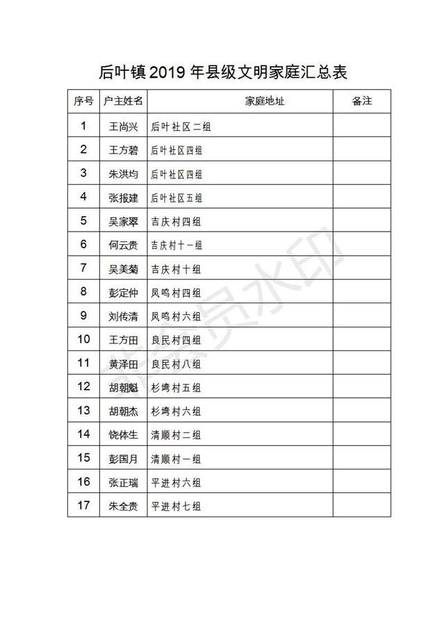 附件:2019年度縣級(jí)文明家庭名單
